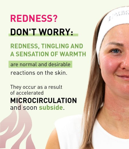 - Testen Sie das Produkt vor der ersten Anwendung auf einer kleinen Hautpartie an der Innenseite des Oberarms. Rötungen, Kribbeln und Wärmegefühle, die mäßig bis intensiv ausfallen können, sind normale Reaktionen, die auf die gewünschte Wirkung des Produktes hindeuten.